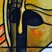 Een op canvas geschilderd 'karton' voor een gebrandschilderd glasraam. Op ware grootte . 4.00 m x 2.00 m